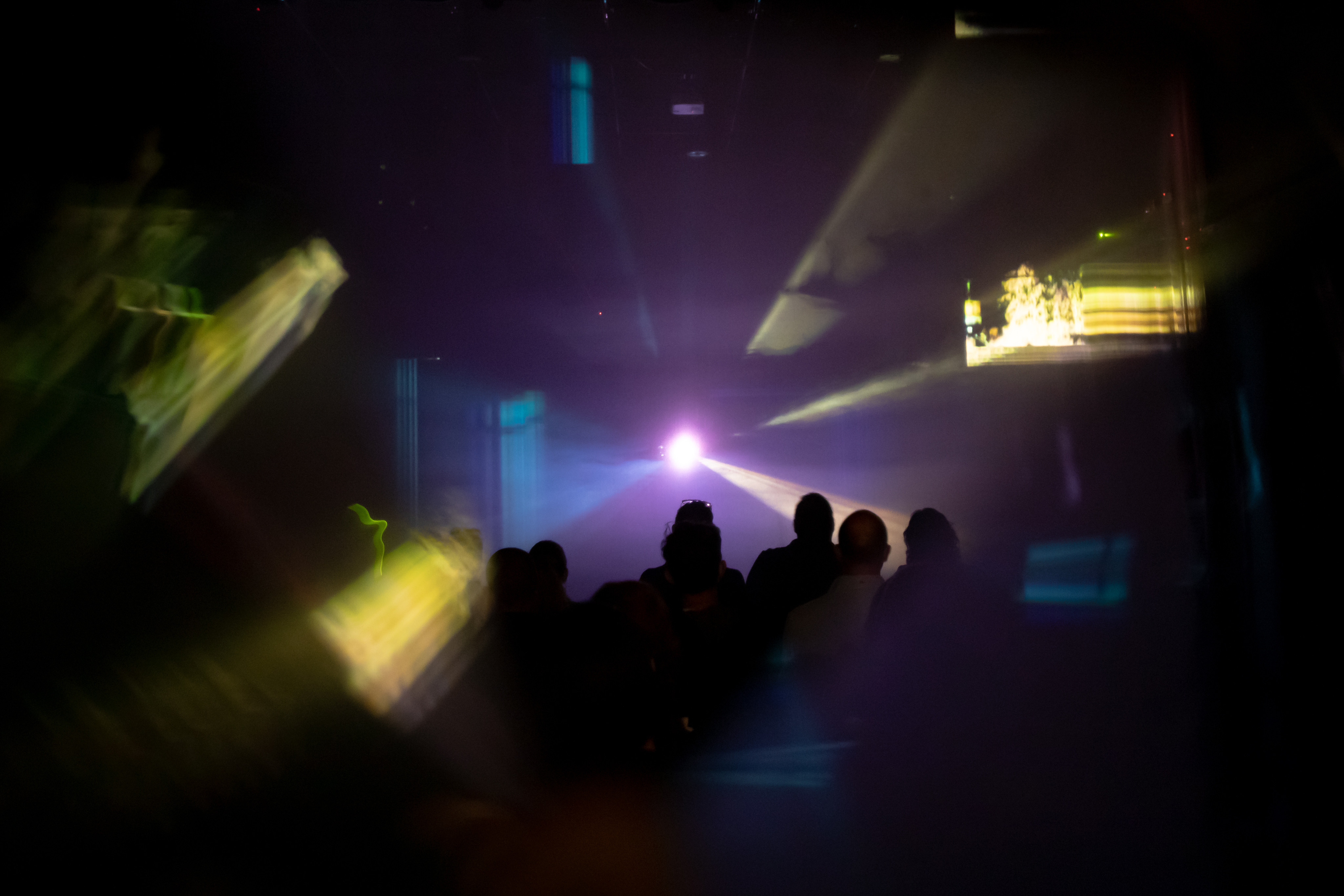 - Multi-screen and playback architecture — TouchDesigner for real-time playback and layer blending; playback instructions from CSV schedules; visual outputs collide, echo, refract across zones